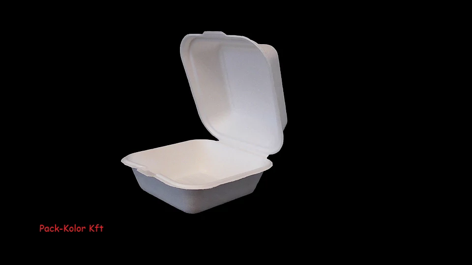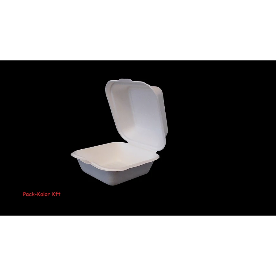 Egyszerhasználatos cukornád doboz hamburgerhez, desszerthez, egyéb kisadag ételhez kíválóan alkalmas így óvjuk vele a környezetet , mert lebomló, komposztálható környezetbarát csomagolás
