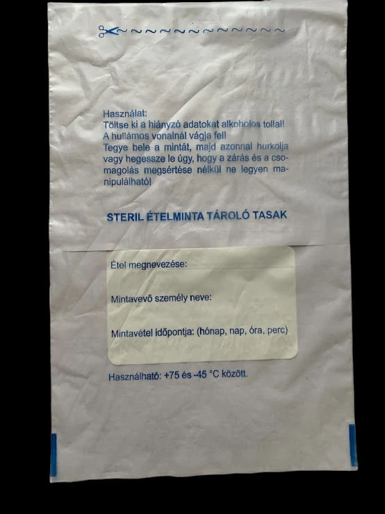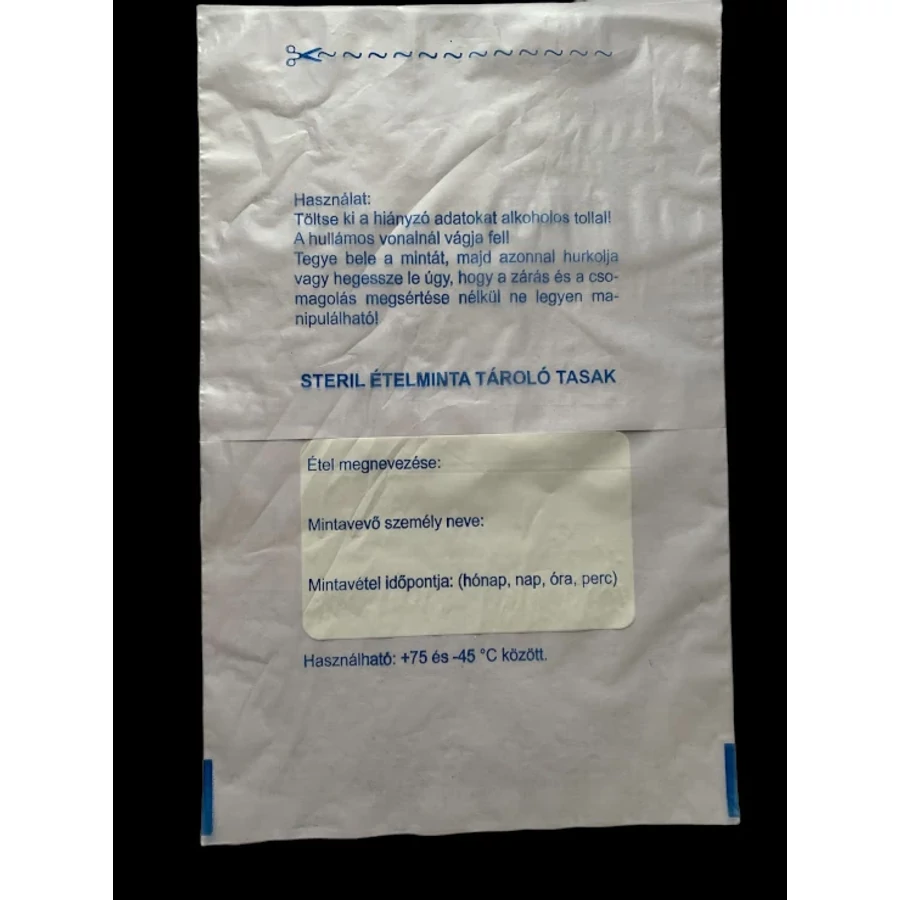 Ételminta tasak 25x35 cm 30my Ételminták tárolására, etikett felülettel.