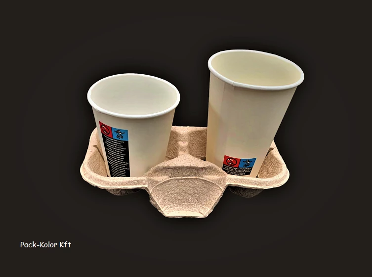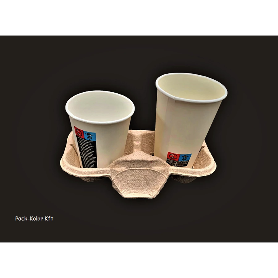Pohár tartó 2 fészkes mely újra hasznosított papírból készült így nem terheli a környezetet .