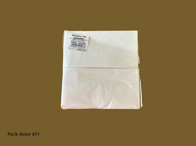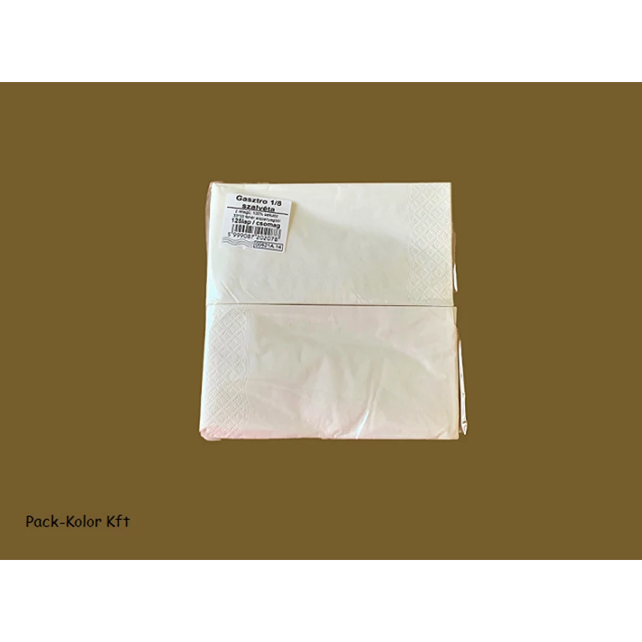 Szalvéta gasztro 2 rétegű hófehér. A teljes méret 32x33 cm, ami 1/8 hajtással 8x16,5 cm. Éttermek , cukrászdák kedvelt szalvétája.
